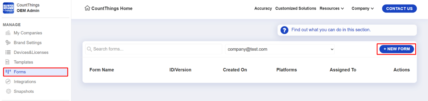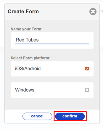 3. Create a new Form by clicking on "+NEW FORM" Name the Form (e.g. Red Tubes) and select on which platform you want to assign the Form.