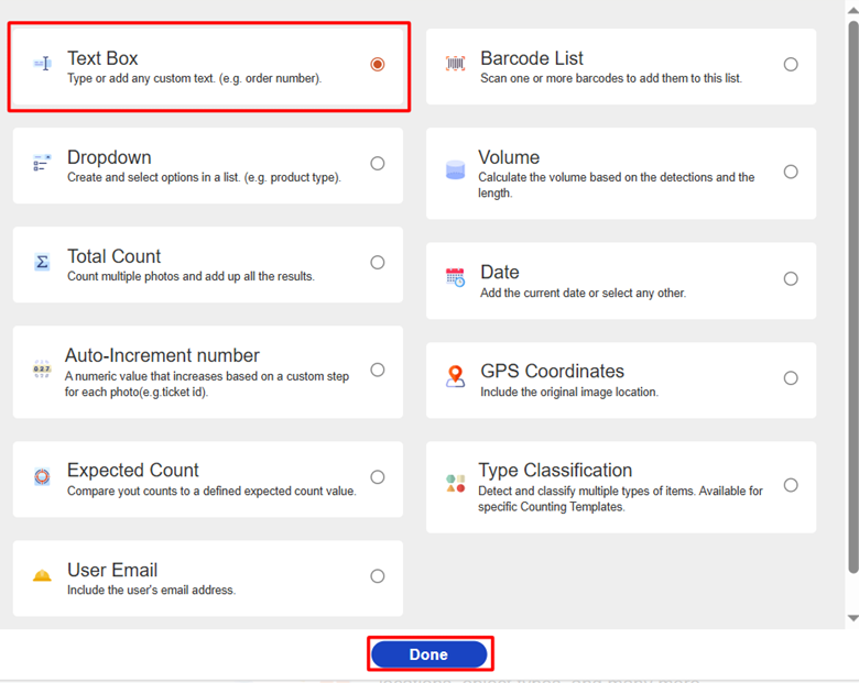 6. Select the field you want to add (e.g. Textbox) and then click "Done".