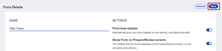 9. After creating the Form, click on the "Save" button at the top right corner of the Form Details menu.